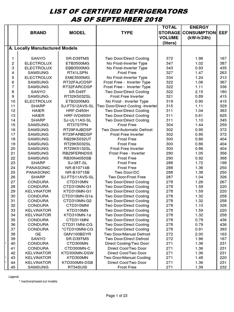 Certified Ref 2018 | PDF | Refrigerator | Domestic Implements