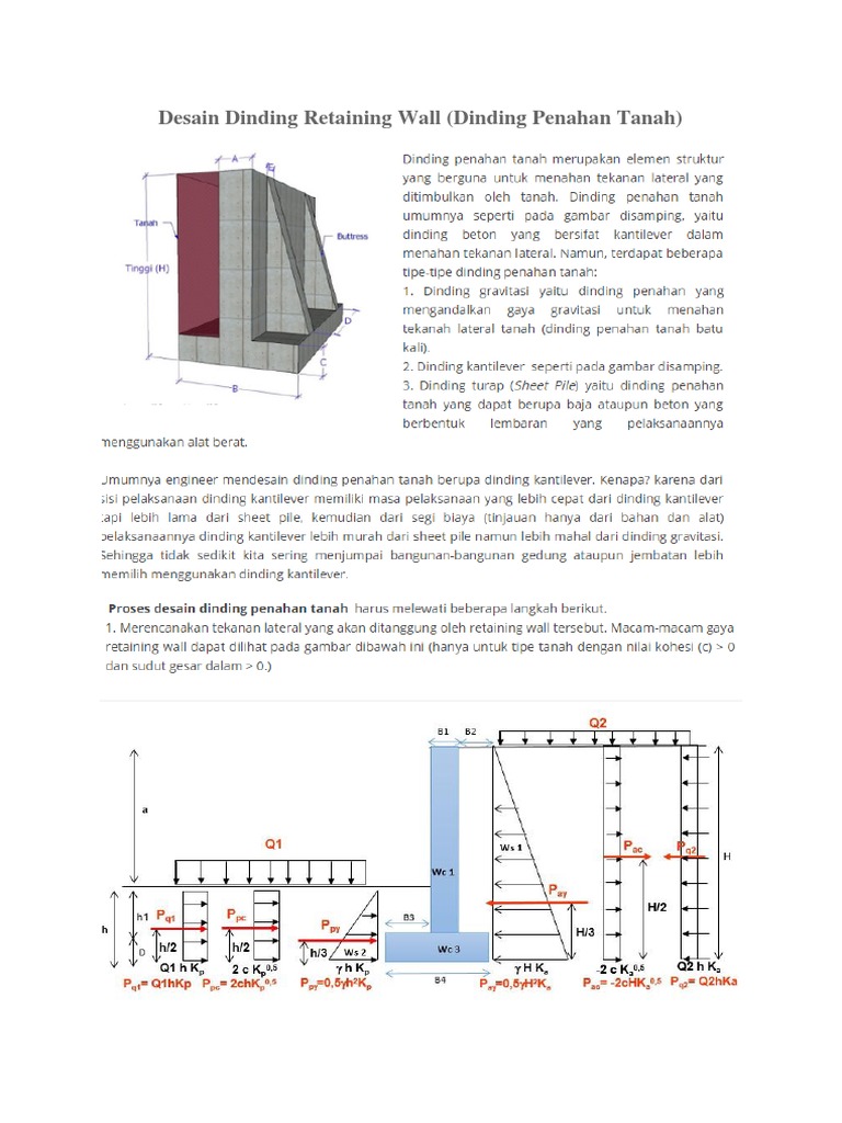 Desain Dinding Retaining Wall (Dinding Penahan Tanah) | PDF