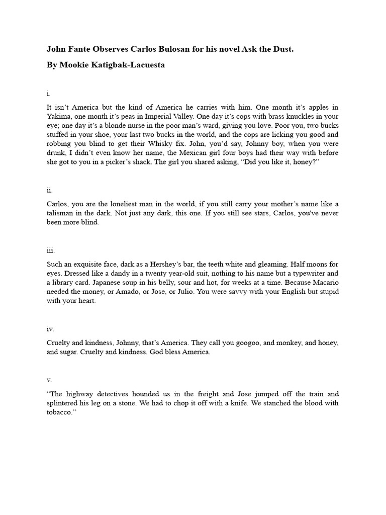 John Fante Observes Carlos Bulosan for his novel Ask the Dust | PDF