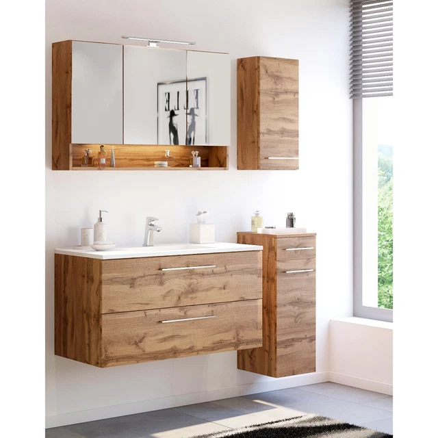 BADMÖBEL SET EICHE Waschtisch Hängeschrank Unterschrank Spiegelschrank ...