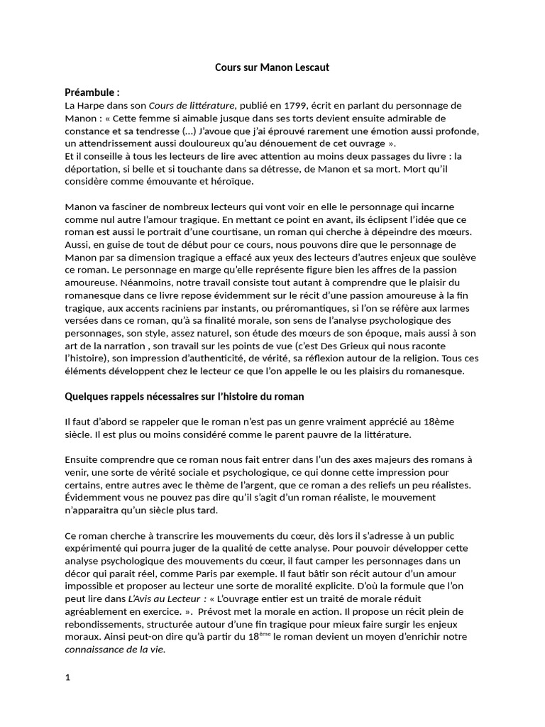 Cours Sur Manon Lescaut 1 | PDF