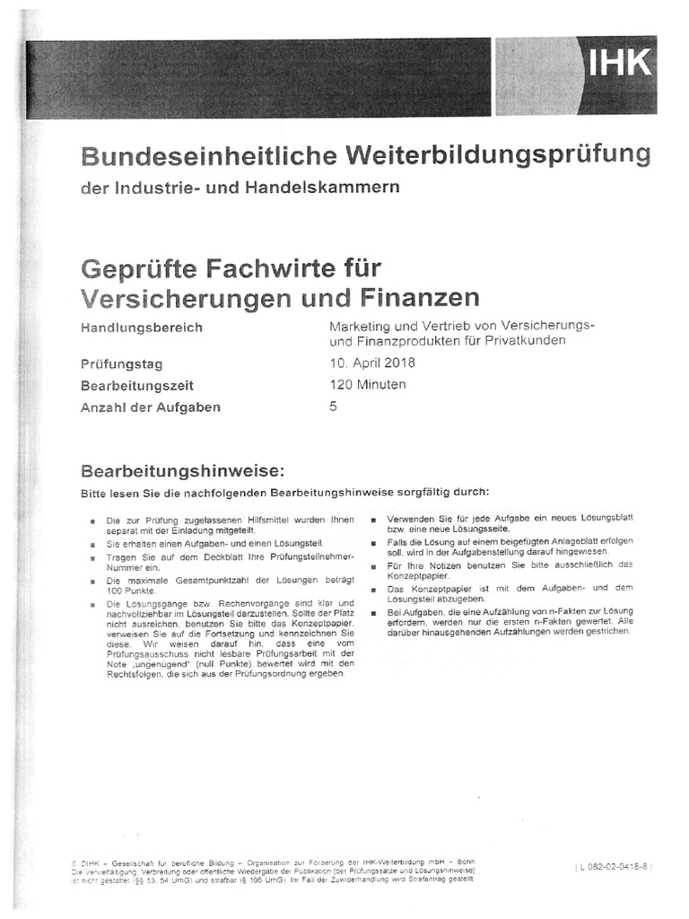 IHK Marketing Und Vertrieb Von Versicherungs Und Finanzprodukten Für ...