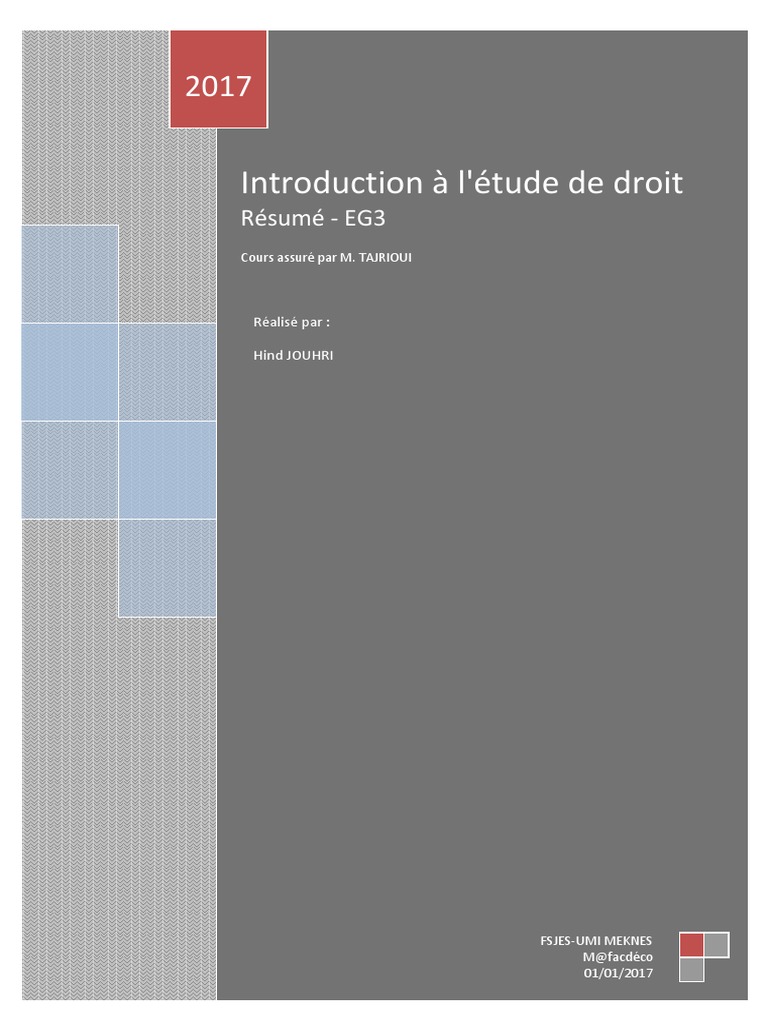 Introduction ; cours intro au droit - Début : 02/ COURS D’INTRODUCTION ...