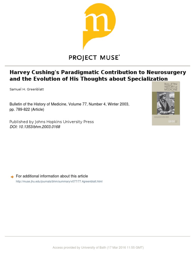 Greenblatt, S. H. (2003) - Harvey Cushing's Paradigmatic Contribution ...