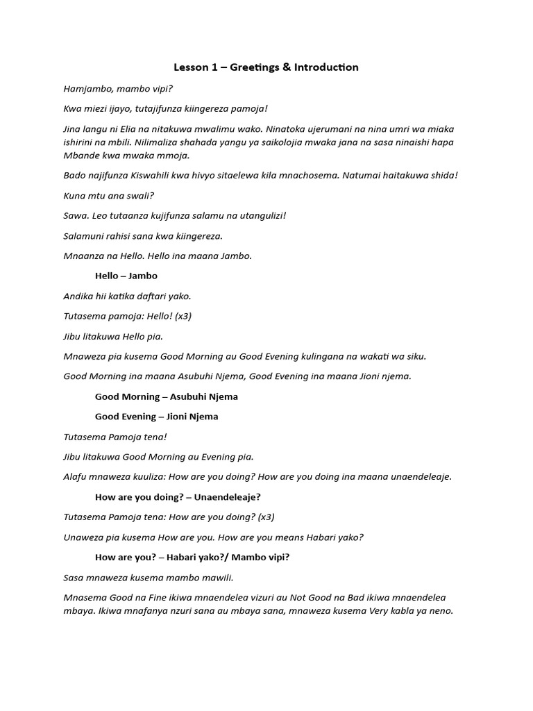 Lesson 1 - Swahili | PDF