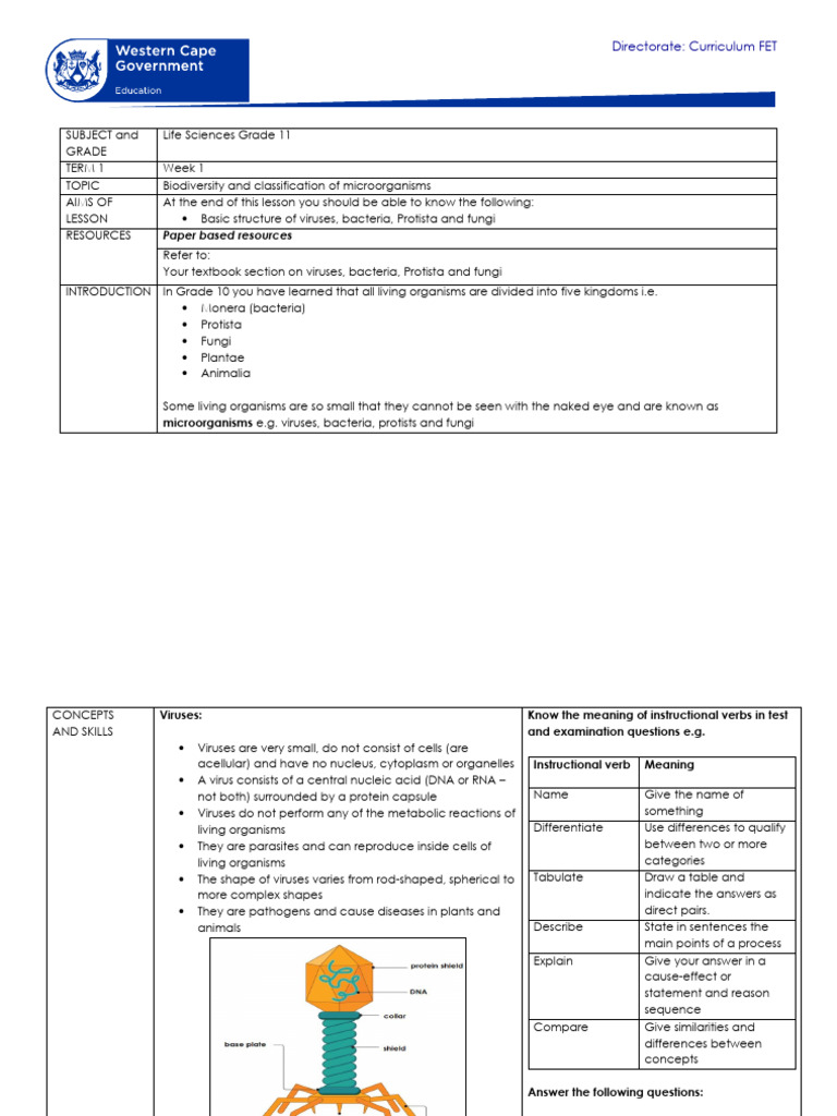 Life Sciences Grade 11 Term 1 Week 1 - 2021 | PDF
