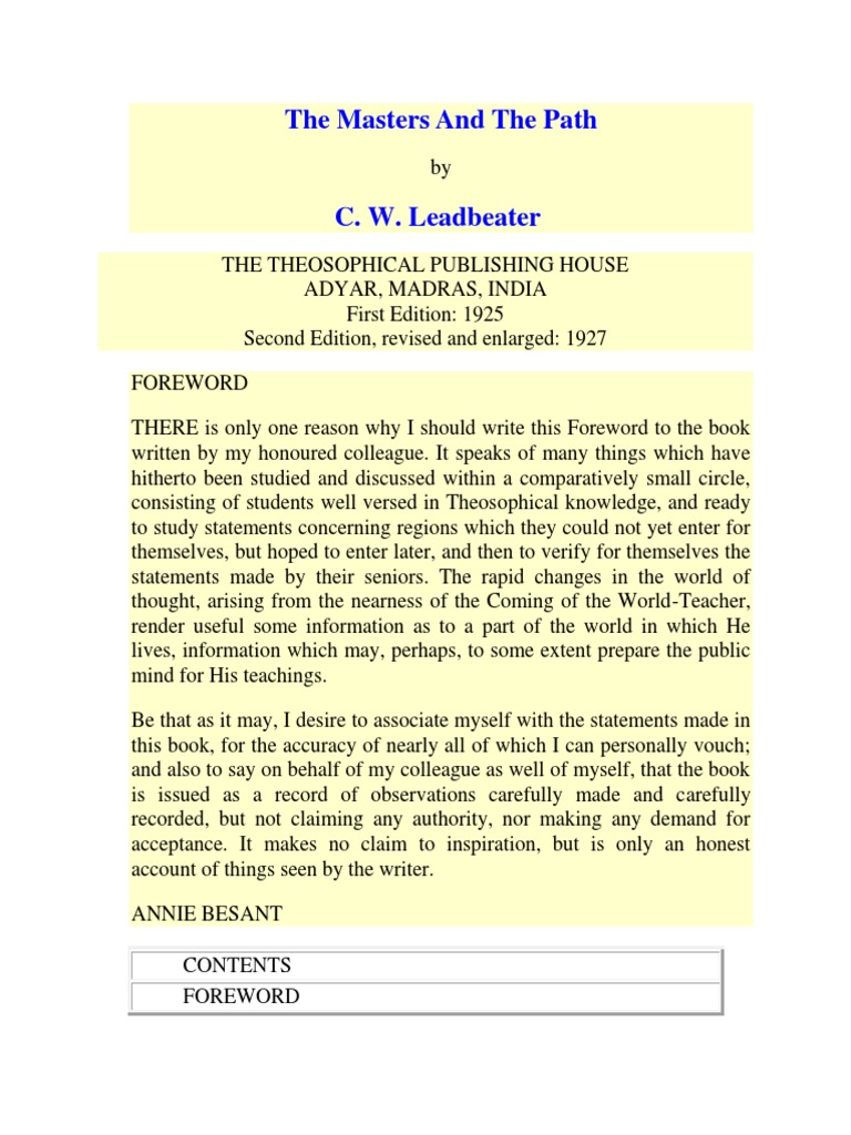The Masters and the Path : Charles R. Leadbeater : Free Download ...