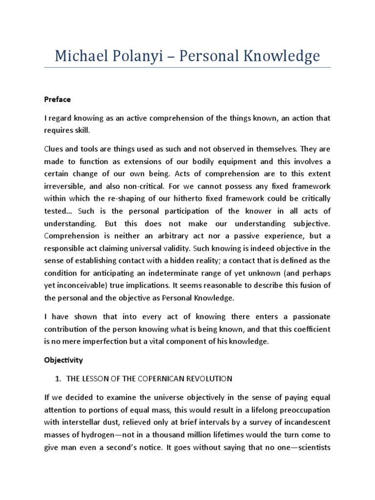 Personal Knowledge by Michael Polanyi | PDF | Persuasion | Science